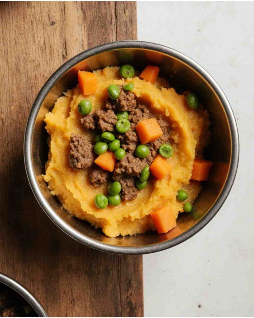 This one’s like comfort food for your dog. Imagine shepherd’s pie without the crust—warm, filling, and guaranteed to knock your dog into a food coma nap.