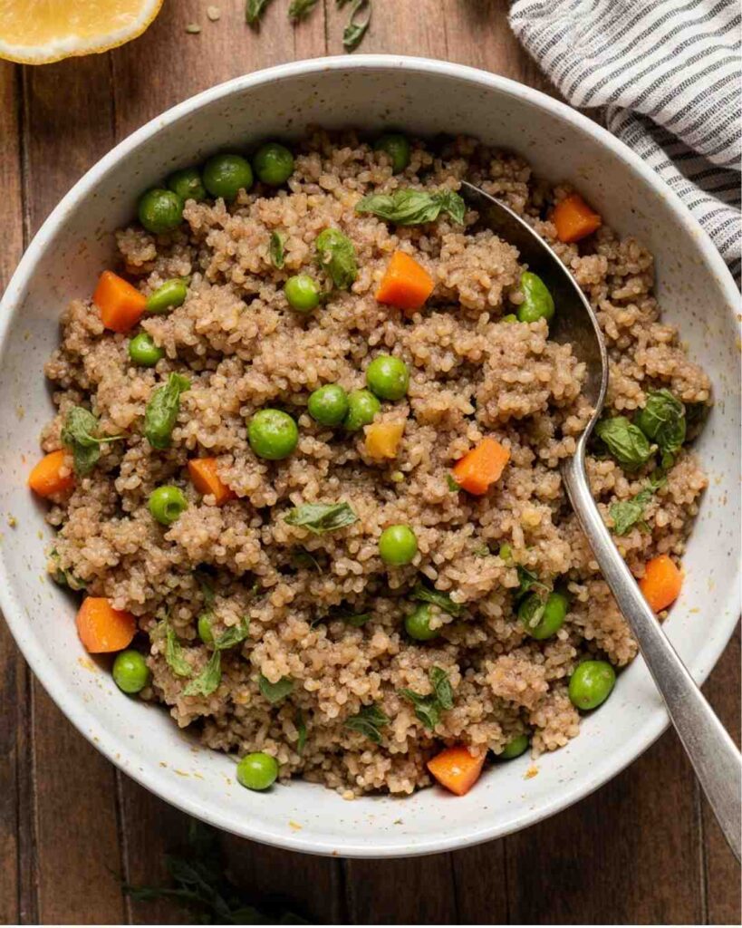 - Cook the rice with water or broth. Simmer until fluffy (about 35–40 minutes).