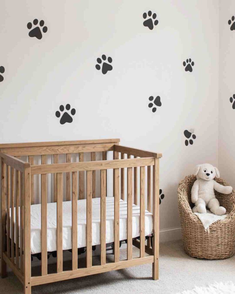 Not full wallpaper? No problem. Paw-print decals let you create a trail across the walls or around the crib.