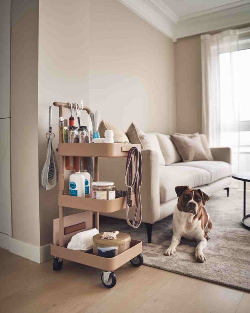 A cart works even better with organized containers like the IRIS Airtight Pet Treat Container.