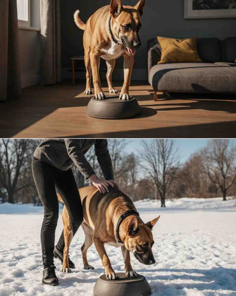 Your dog learns how to shift their weight and stay balanced. Ever seen a dog suddenly “figure out” how their body works? It’s adorable—and incredibly useful in winter.For balance work, the FitPaws Balance Disc is a game-changer.