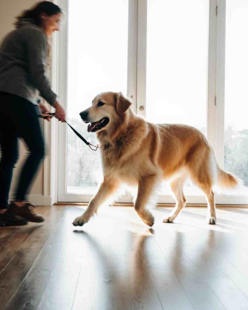 This teaches your dog the difference between “walk fast” and “walk carefully.”Using a lightweight long training leash helps your dog move naturally without slipping.