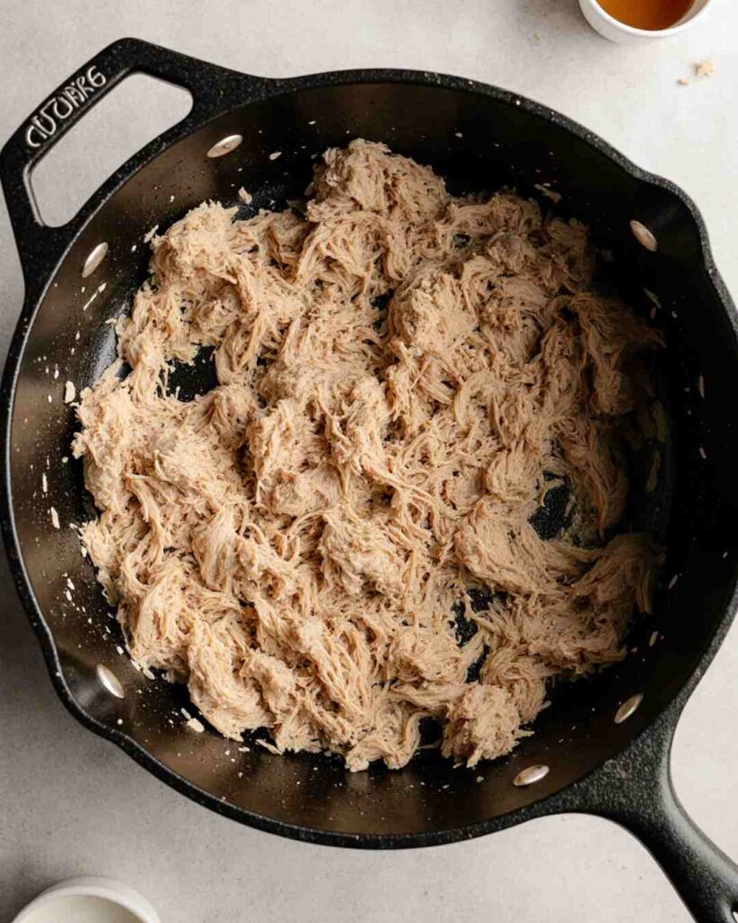 - Cook the protein: Prepare the chosen protein in a separate pan—plain, with no seasoning. Cook completely, then shred or chop into small pieces.