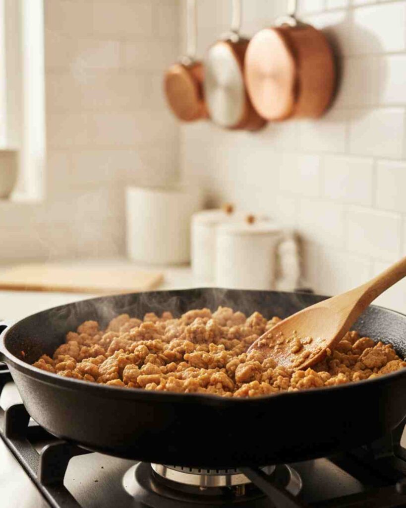 - Cook the Turkey: Cook lean ground turkey in a skillet until no pink remains. Drain any excess fat and let it cool.