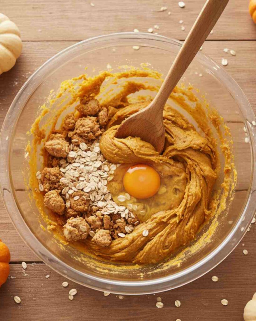 Sprinkle in the flour and oats gradually. Stir after each addition. By the end, you should have a soft dough that’s a little sticky but manageable. If it’s too wet, add more flour; too dry, add a splash of water.