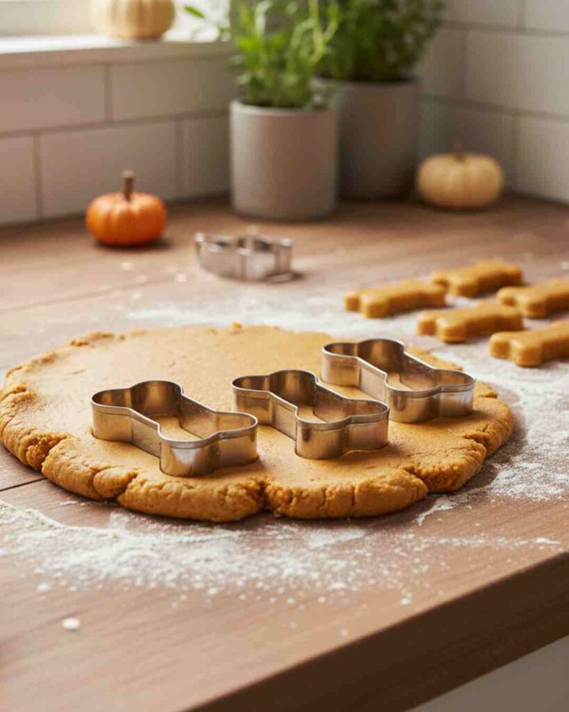Here’s the fun part! Use cookie cutters to make bones, paws, or hearts. Don’t have cutters? Slice the dough into bite-sized squares. Your dog won’t complain about the shape—promise.